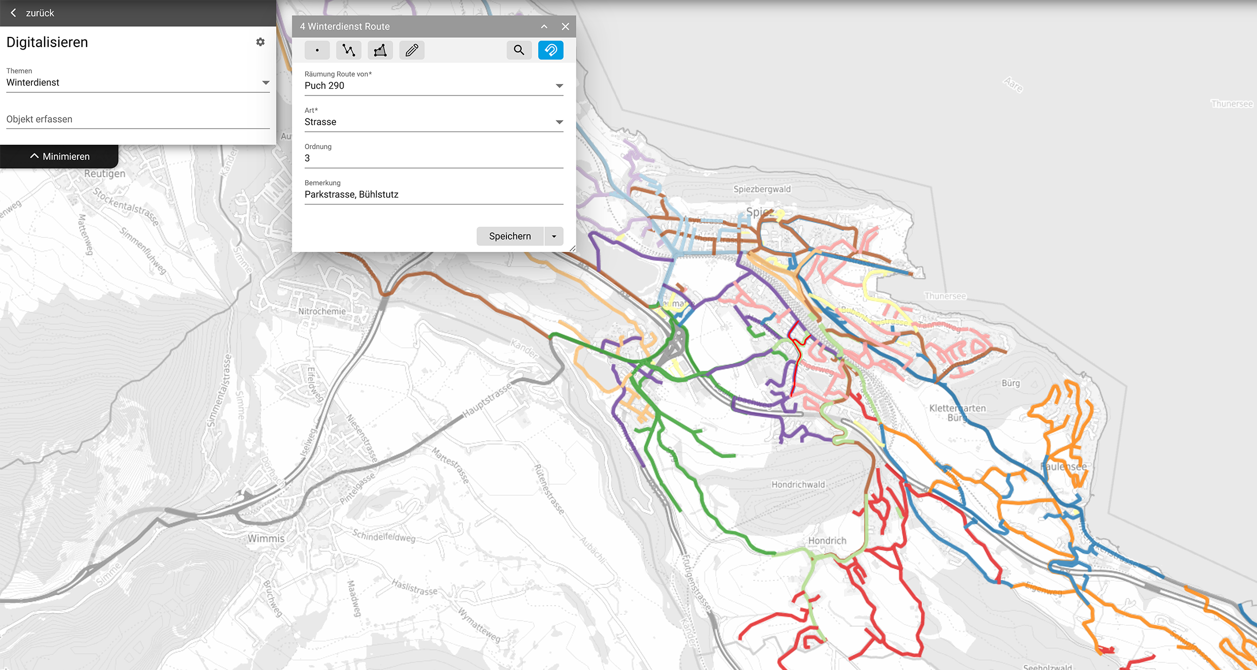 • Räumliche Erfassung der Winterdienstrouten